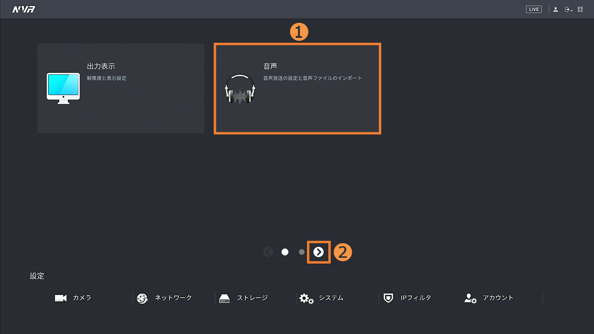 レコーダーへ音声ファイル※を登録し、スピーカー付きモニターから音声を出力します。