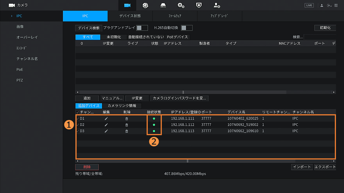 [Dシリーズ]PoEハブ接続のカメラをレコーダーへ追加する設定方法