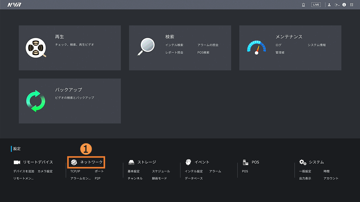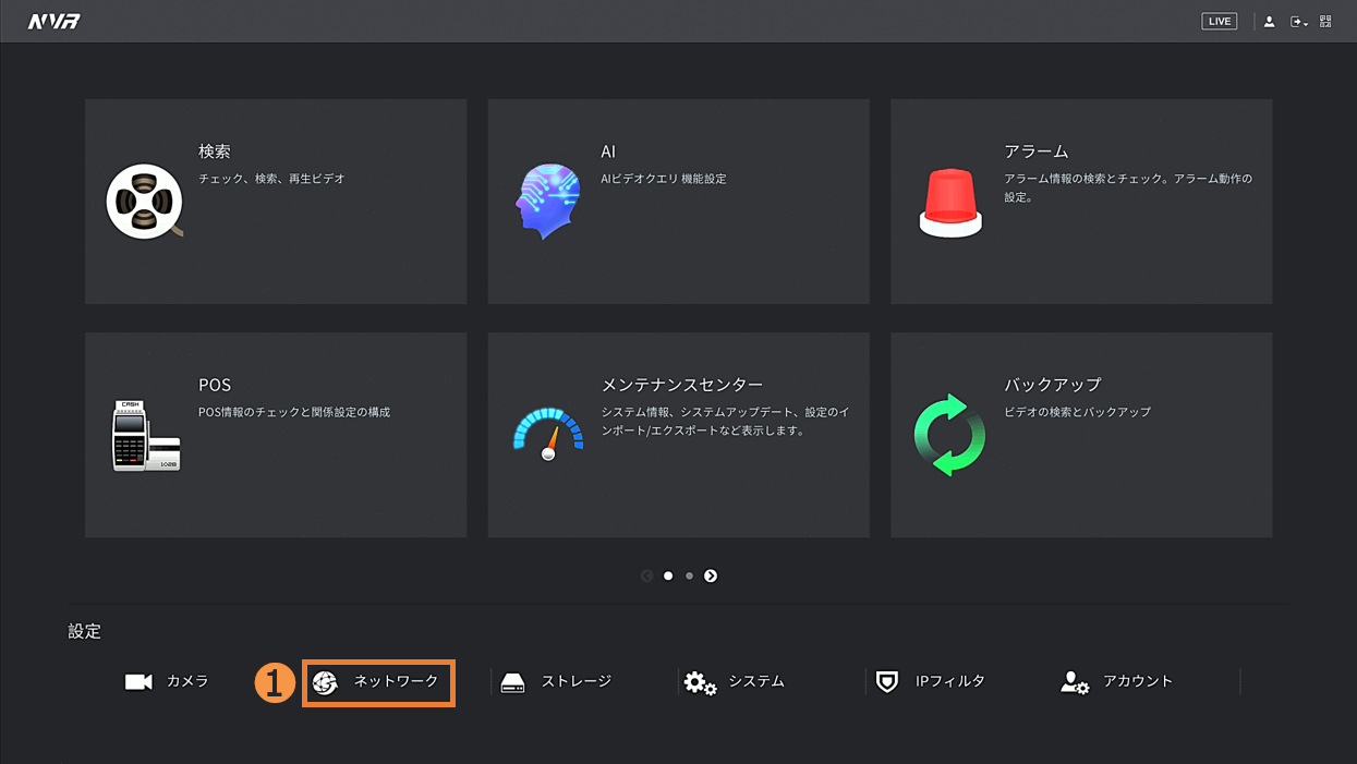 メインメニュー画面の❶[ネットワーク]をクリックします。
