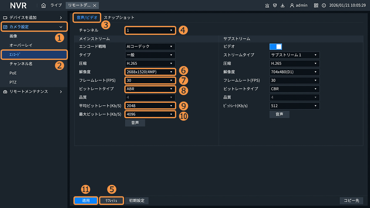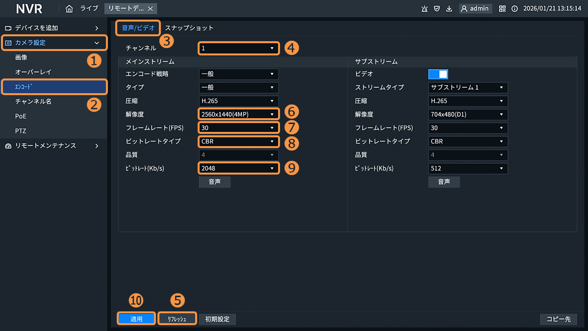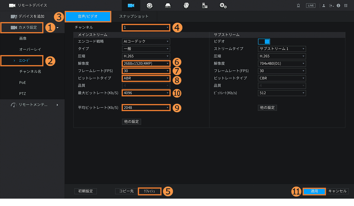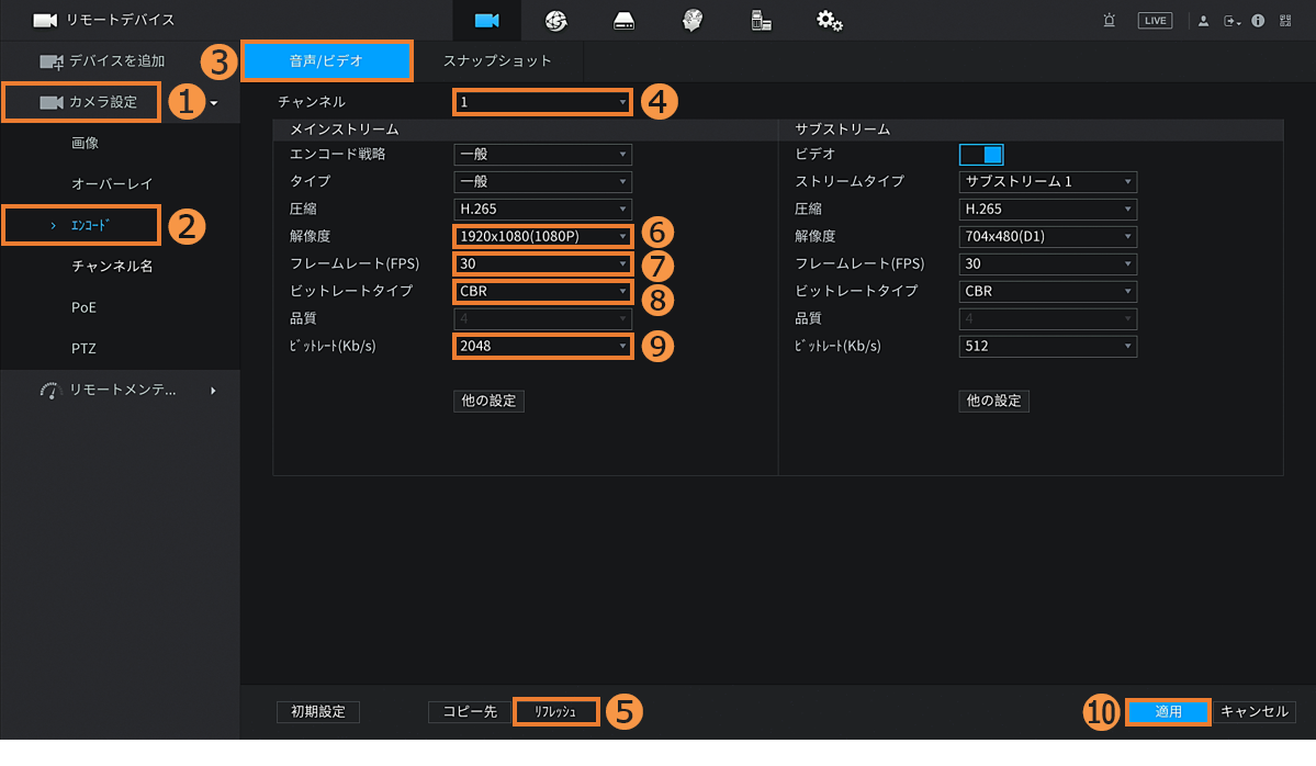 [Dシリーズ]カメラのエンコード(パラメータ)の設定方法