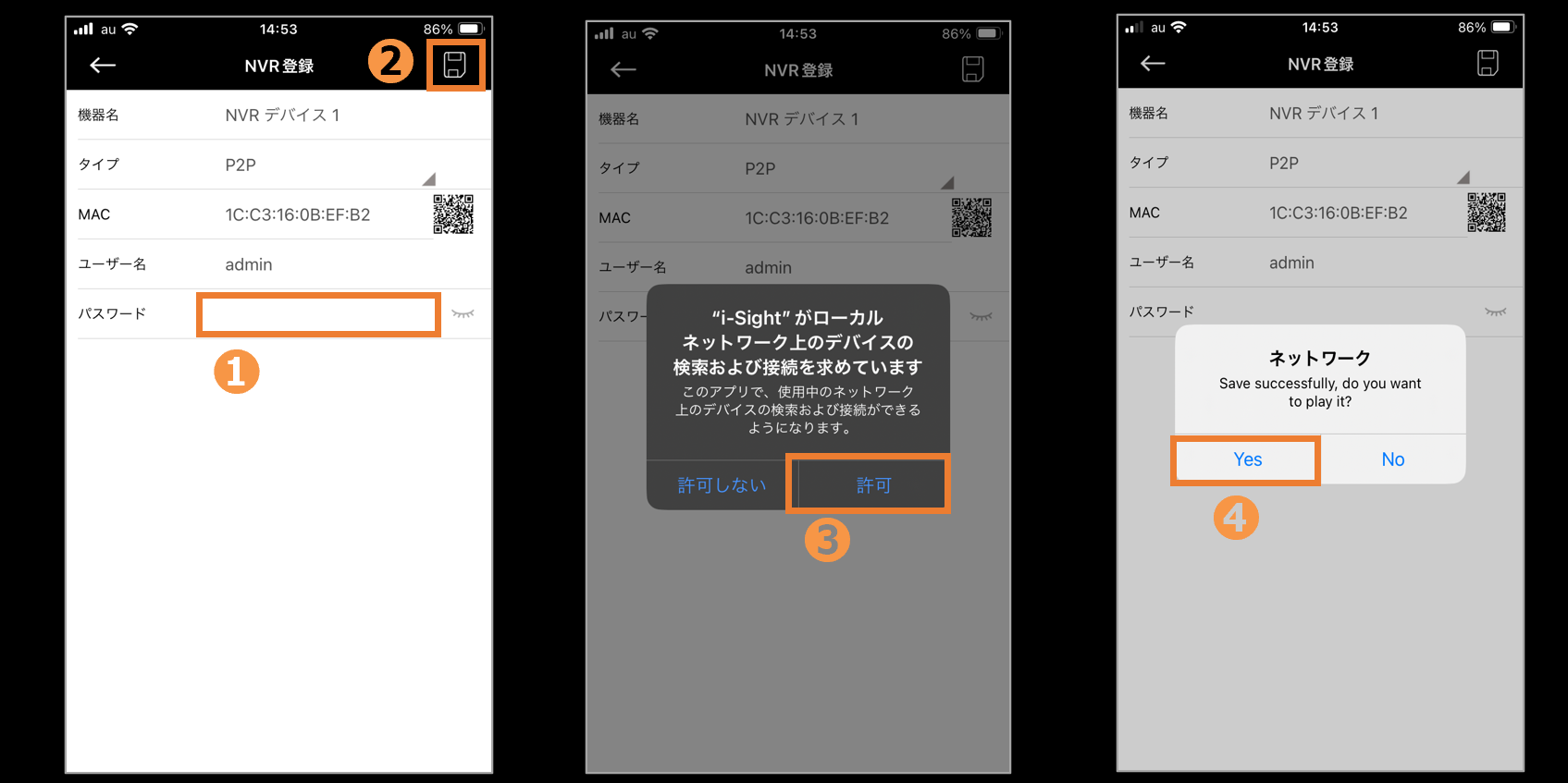 例として、レコーダーを「P2P接続」で登録する手順をご案内します。