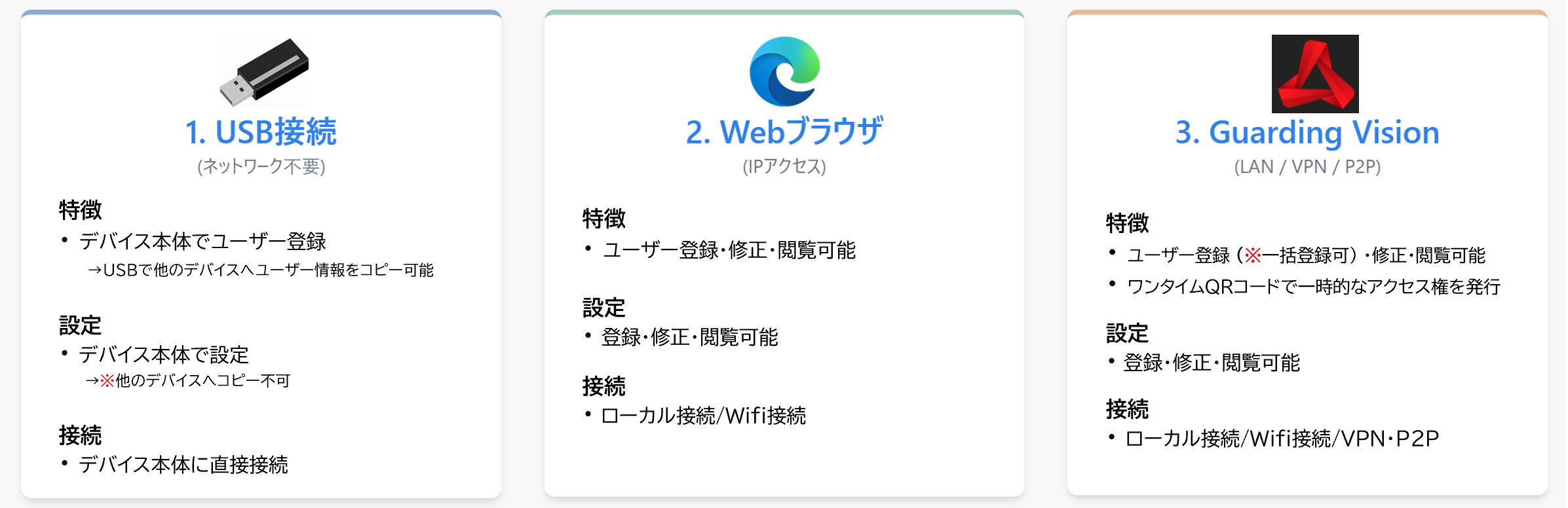 カード登録最大3,000枚・顔登録1,500件に対応。