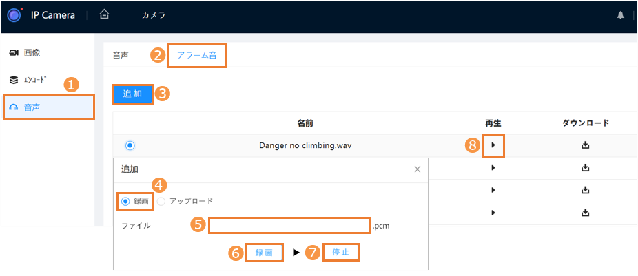 [IP-8834AI-AG / 5834AI-AG]アクティブガードカメラの警告音を任意の音声に登録・変更する設定方法