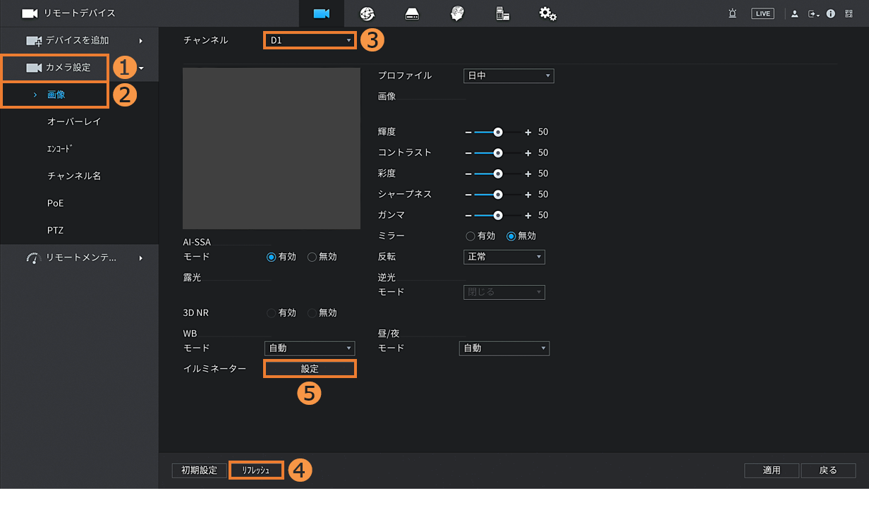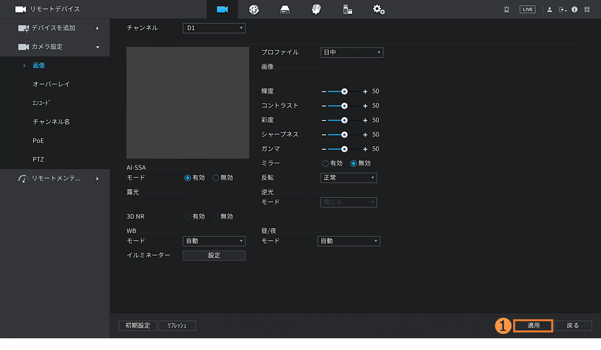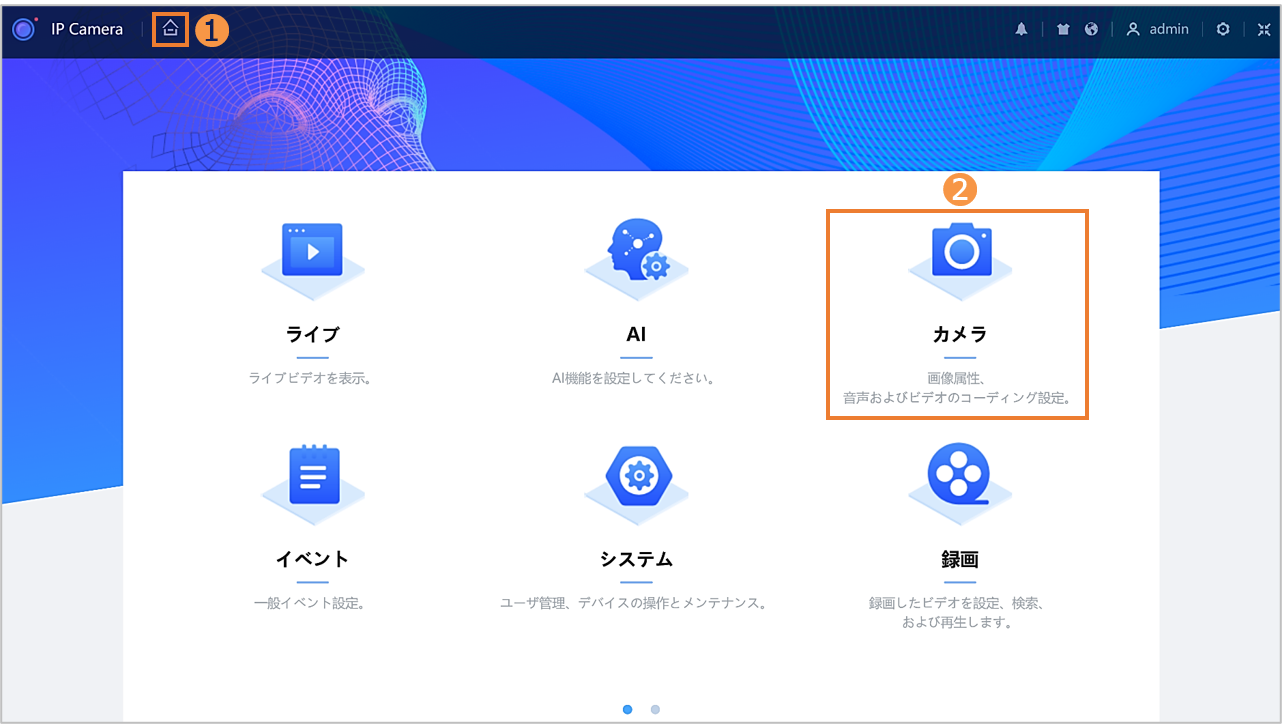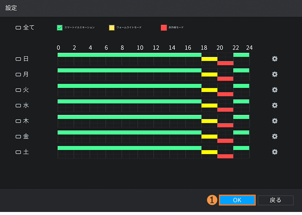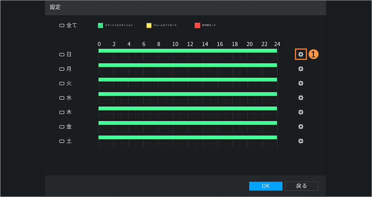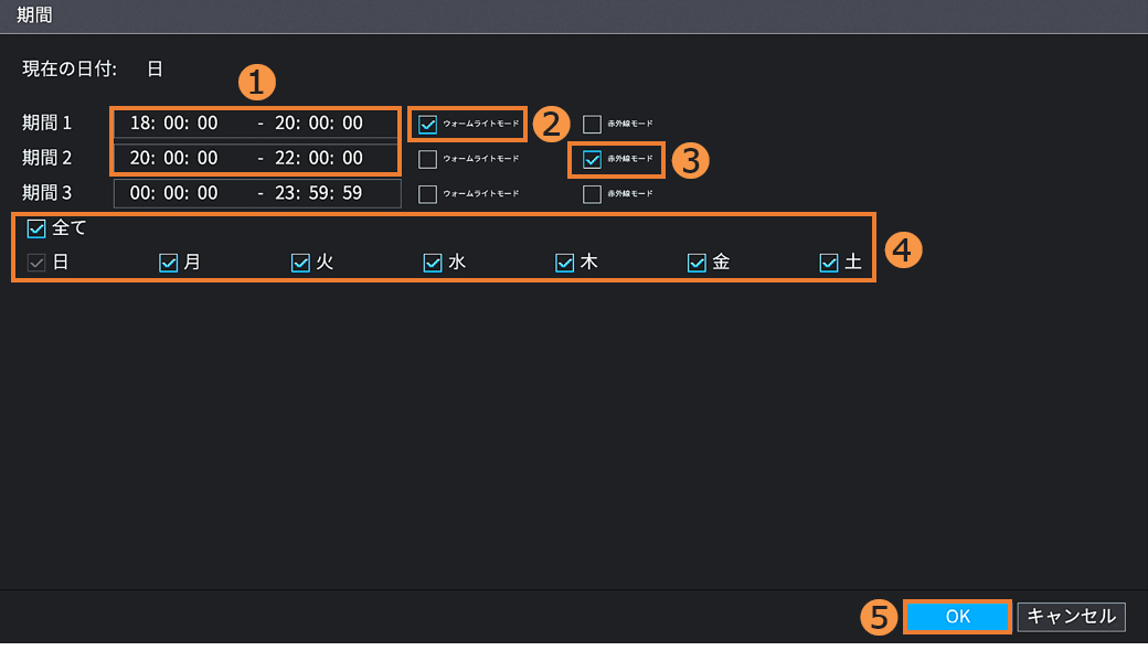 [IP-8834AI-AG / 5834AI-AG]アクティブガードカメラのウォームライト(暖色LED)の明るさと点灯継続時間および、補助光モードを変更する設定方法